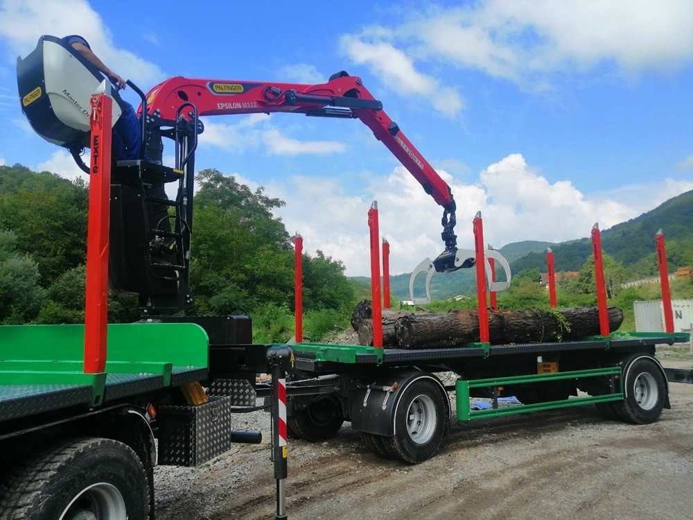 Šumarska prikolica PSM 180 je dvoosovinska prikolica opremljena sa dva para EXTE štica. Ugrađeni ECO tronic sistem obaveštava vozača o težini tereta, čime se sprečava preopterećenje prikolice. Prikolica je opremljena vazdušnim oslanjanjem i osovinama visokog kvaliteta renomiranih proizvođača.