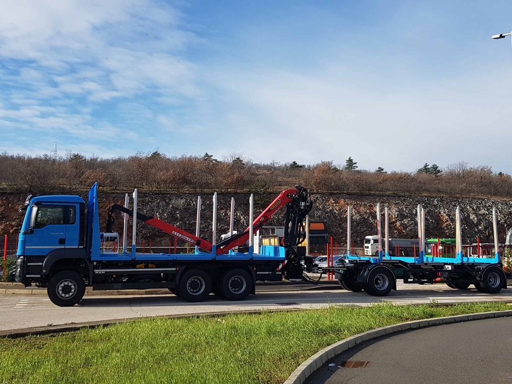 Šumarska prikolica PSM 300 je troosovinska prikolica sa četiri para EXTE štica. Ugrađena automatska vaga obaveštava vozača o težini tereta, čime se sprečava preopterećenje prikolice. Prikolica je opremljena vazdušnim oslanjanjem i osovinama visokog kvaliteta renomiranih proizvođača.
