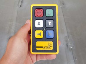 • radio upravljanje (funkcije: namatanje/odmatanje vitla, pomak vitla levo/desno, podizanje/spuštanje platforme, start–stop)